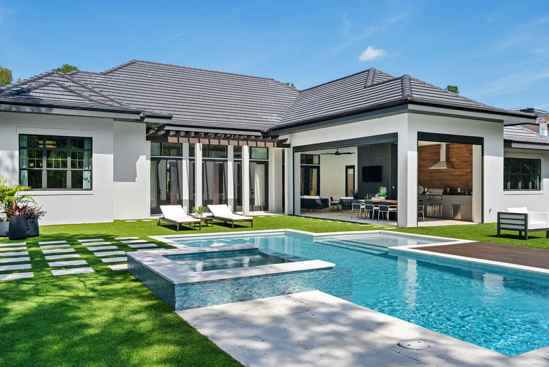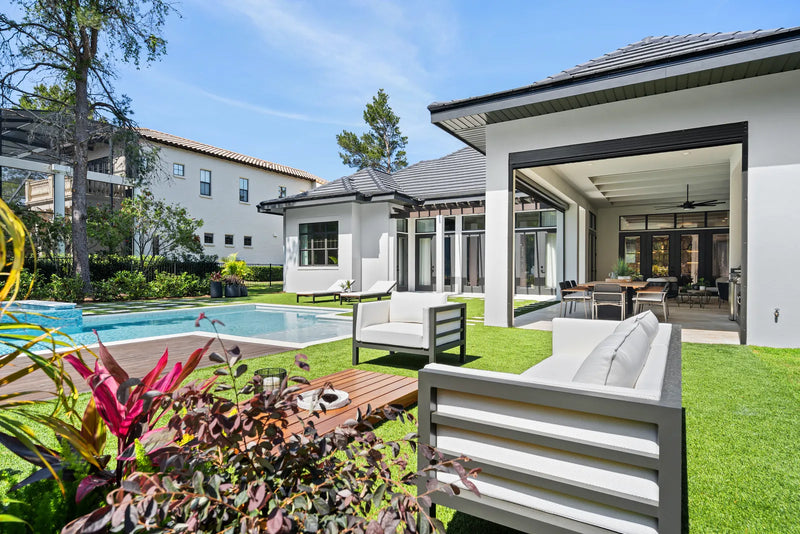 The house expresses a balance between opulent classicism and refined